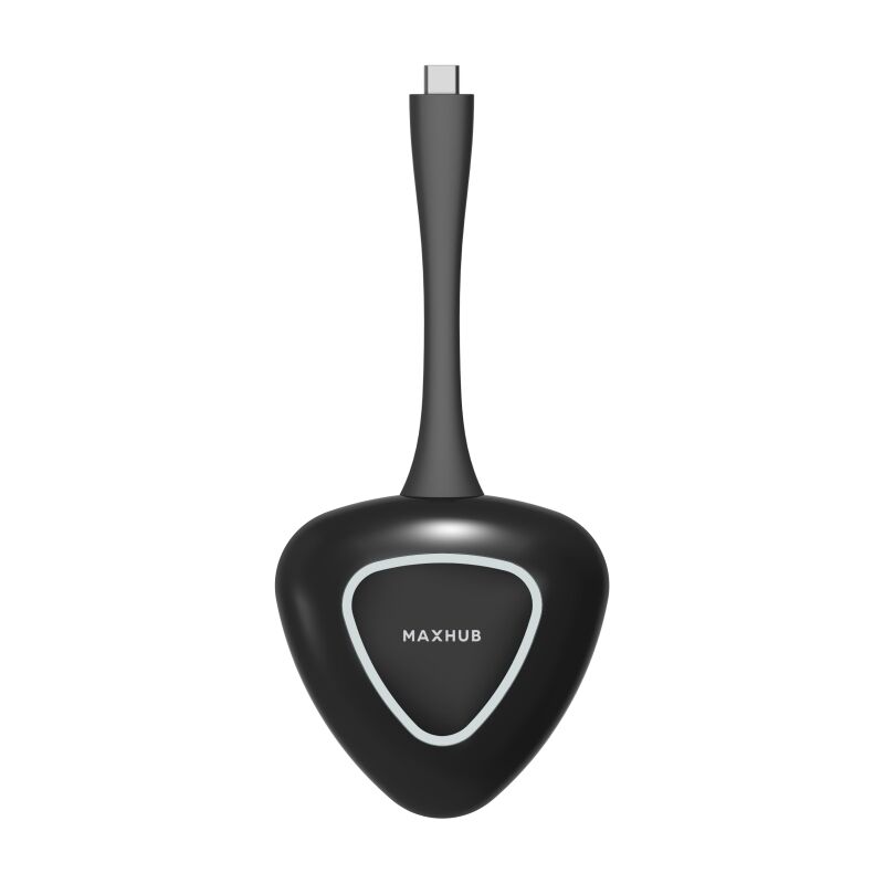 Wireless screen sharing dongle compatible with all MAXHUB IFP. USB 2.0 or later with a Type C connector. Supports windows 7 and mac OS 10.10 or later. Supports split screen and touch back technology. Single button operation