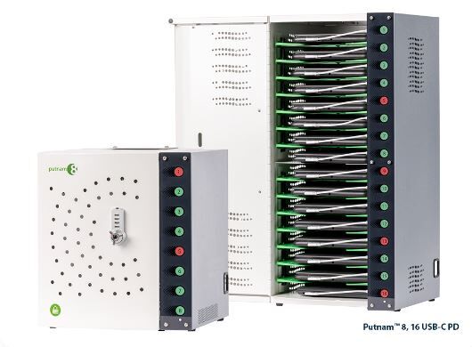 Charging station with an 8-port USB-C PD 18W hub. Charge, store and secure 8 devices with USB-C ports. Pre-wired with USB-C cables. Wall mount kit optional PCL10-10175.